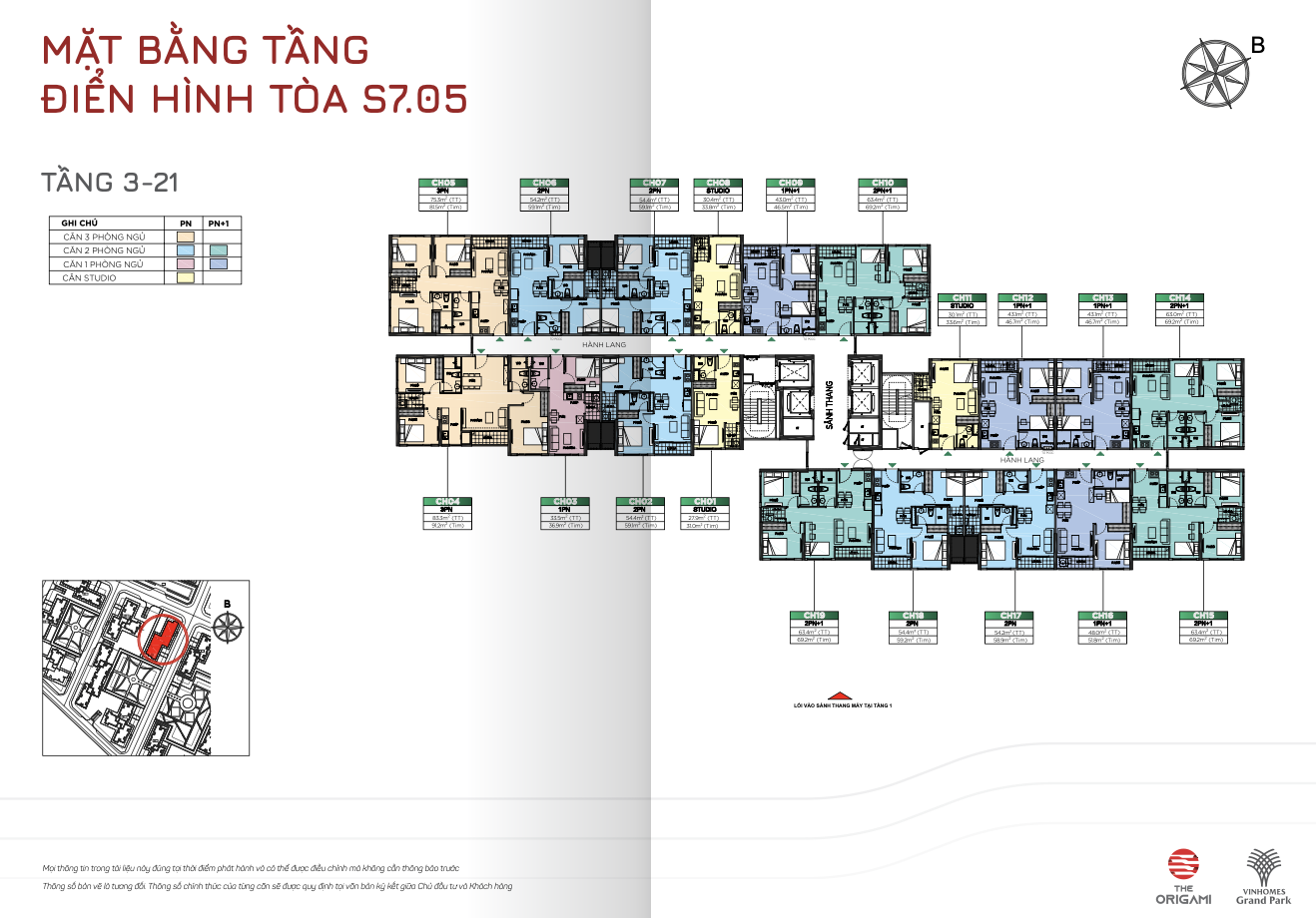 - Các loại hình căn hộ: studio, 1PN – 3PN