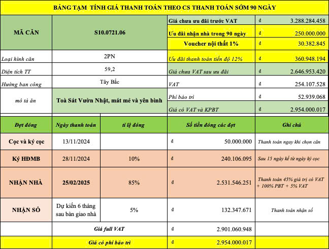 Hình 4: Bảng tính giá tham khảo căn hộ 2 phòng ngủ để anh chị và các bạn tiện tham khảo .