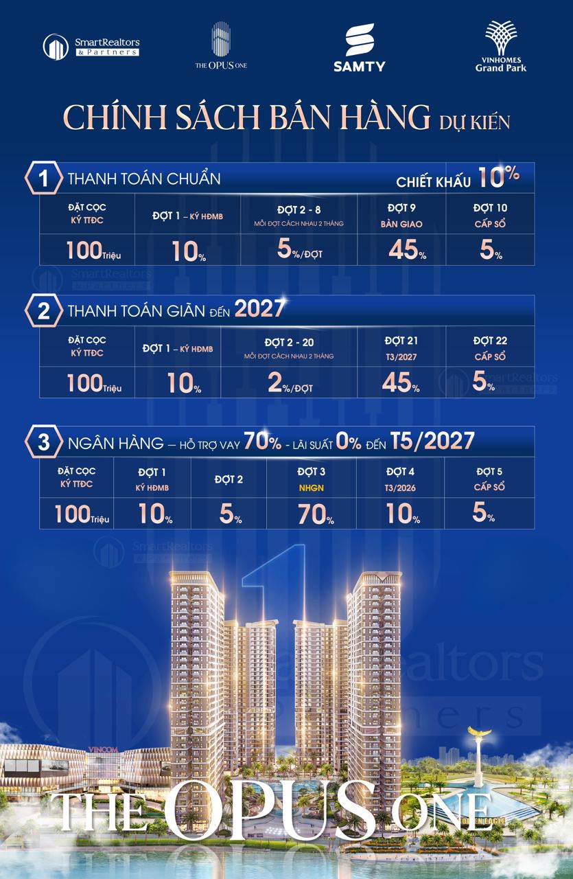 Chính sách bán hàng căn hộ The Opus One tại Vinhomes Grand Park – dự kiến như thế nào