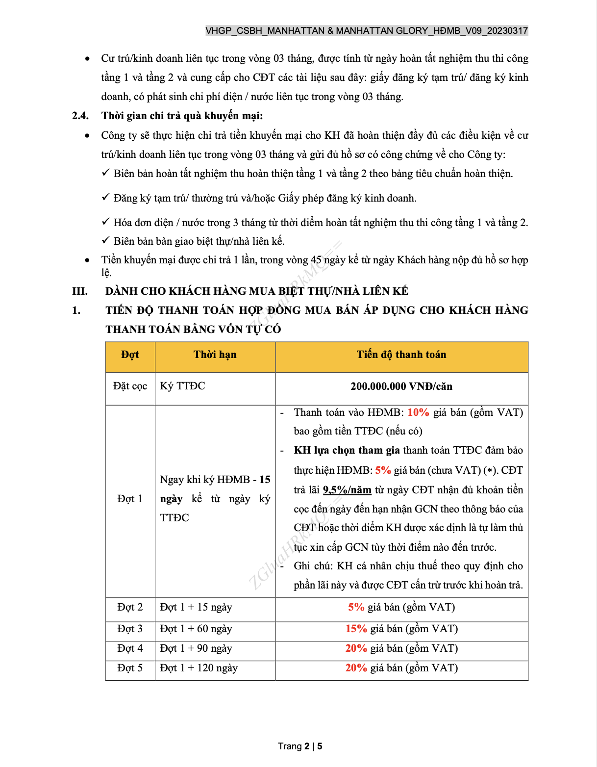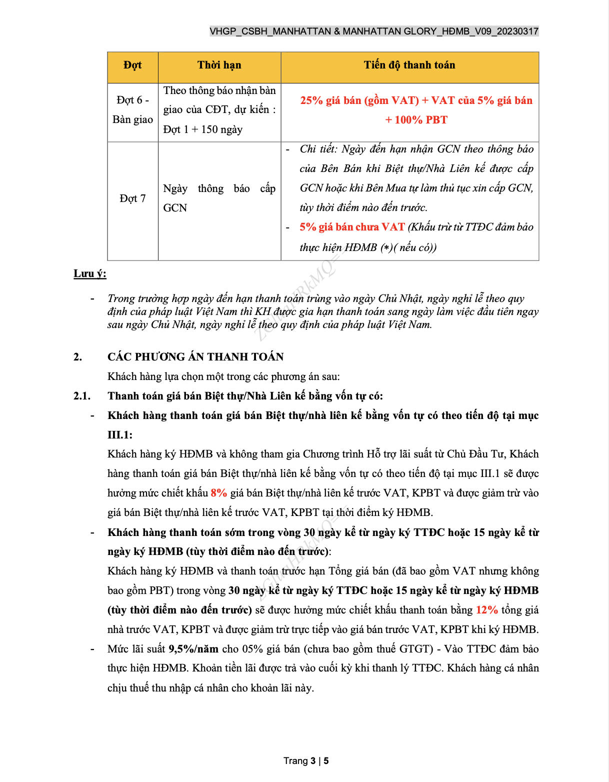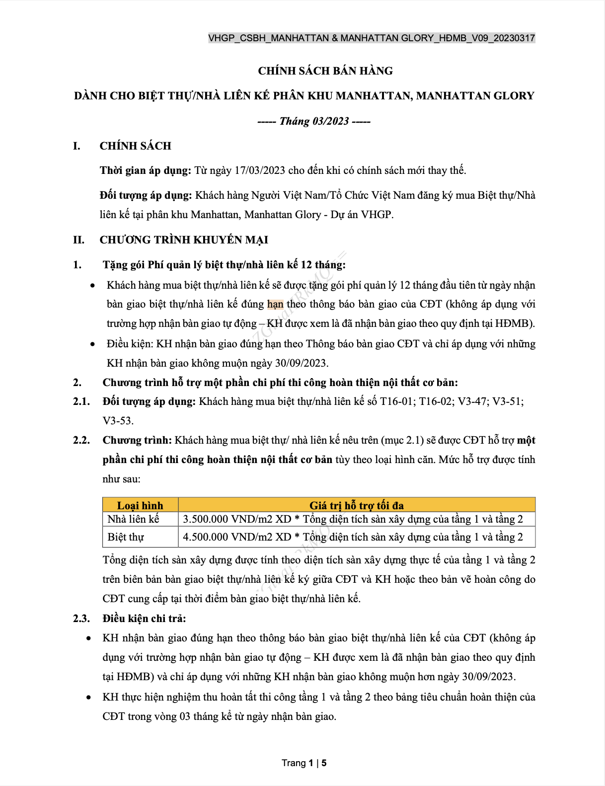 CHÍNH SÁCH BÁN HÀNG DÀNH CHO BIỆT THỰ/NHÀ LIÊN KẾ PHÂN KHU MANHATTAN, MANHATTAN GLORY