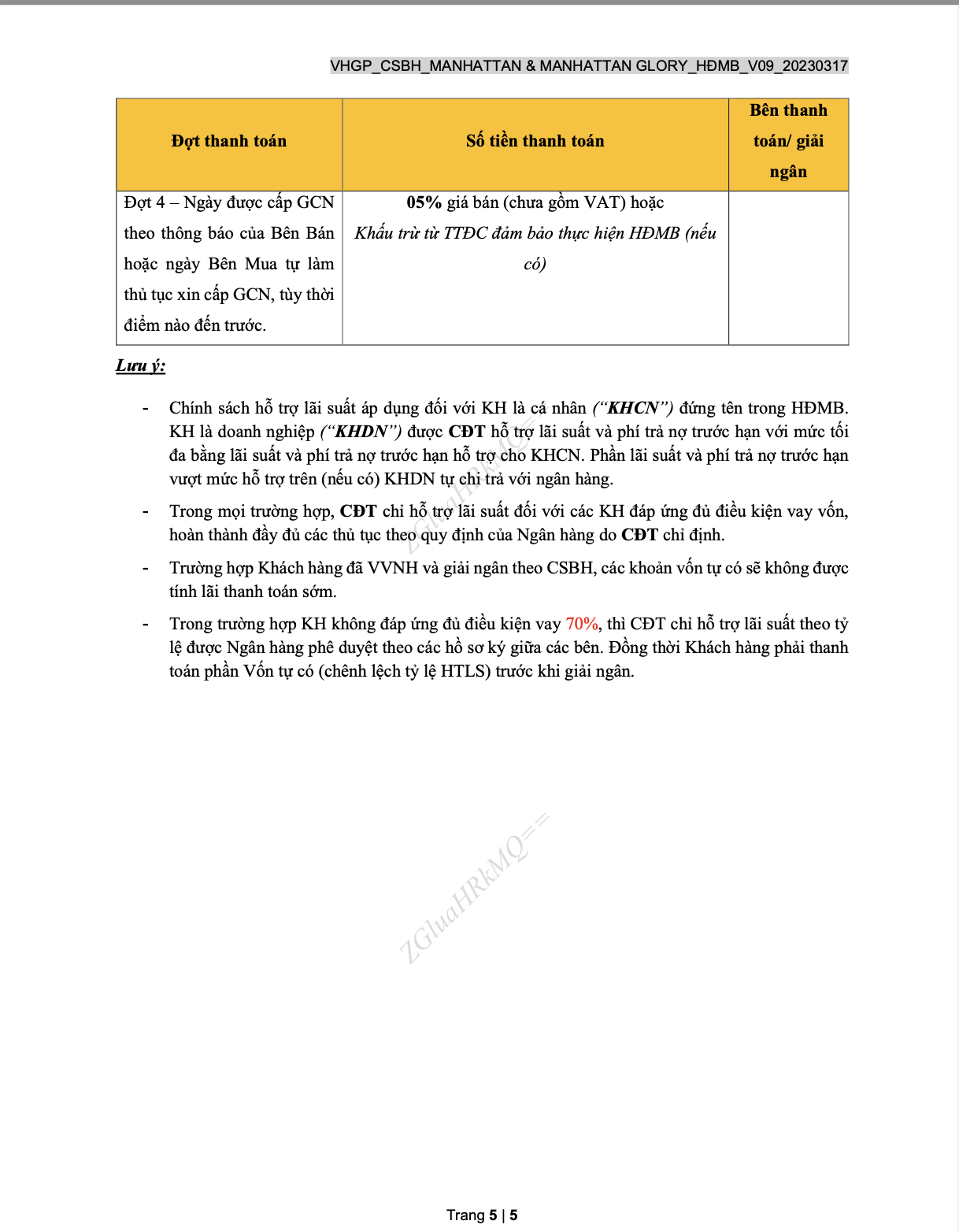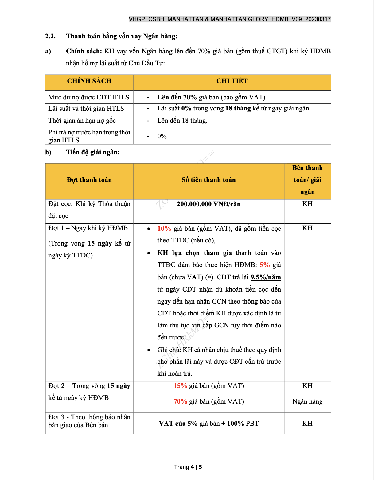 Chính sách bán hàng phân khu Manhattan và Manhattan Glory