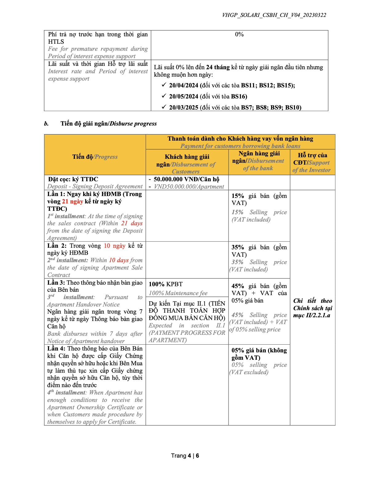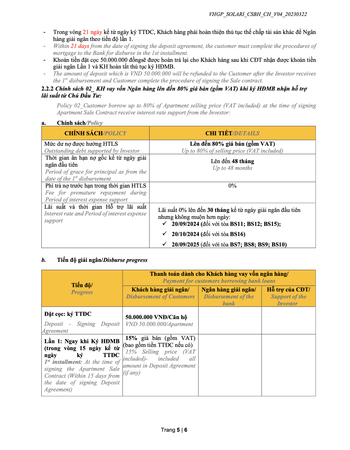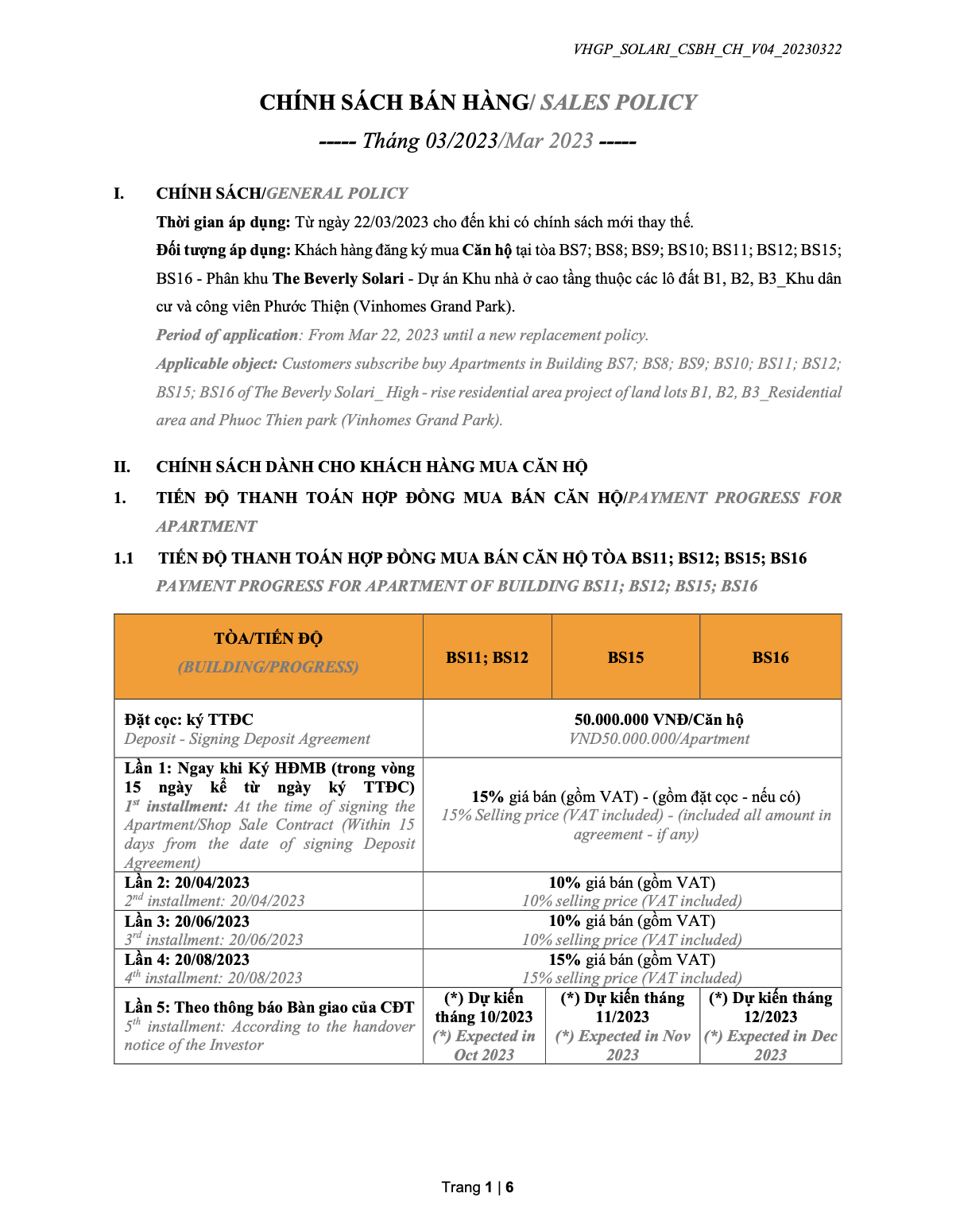 Chính sách bán hàng phân khu The Beverly Solari