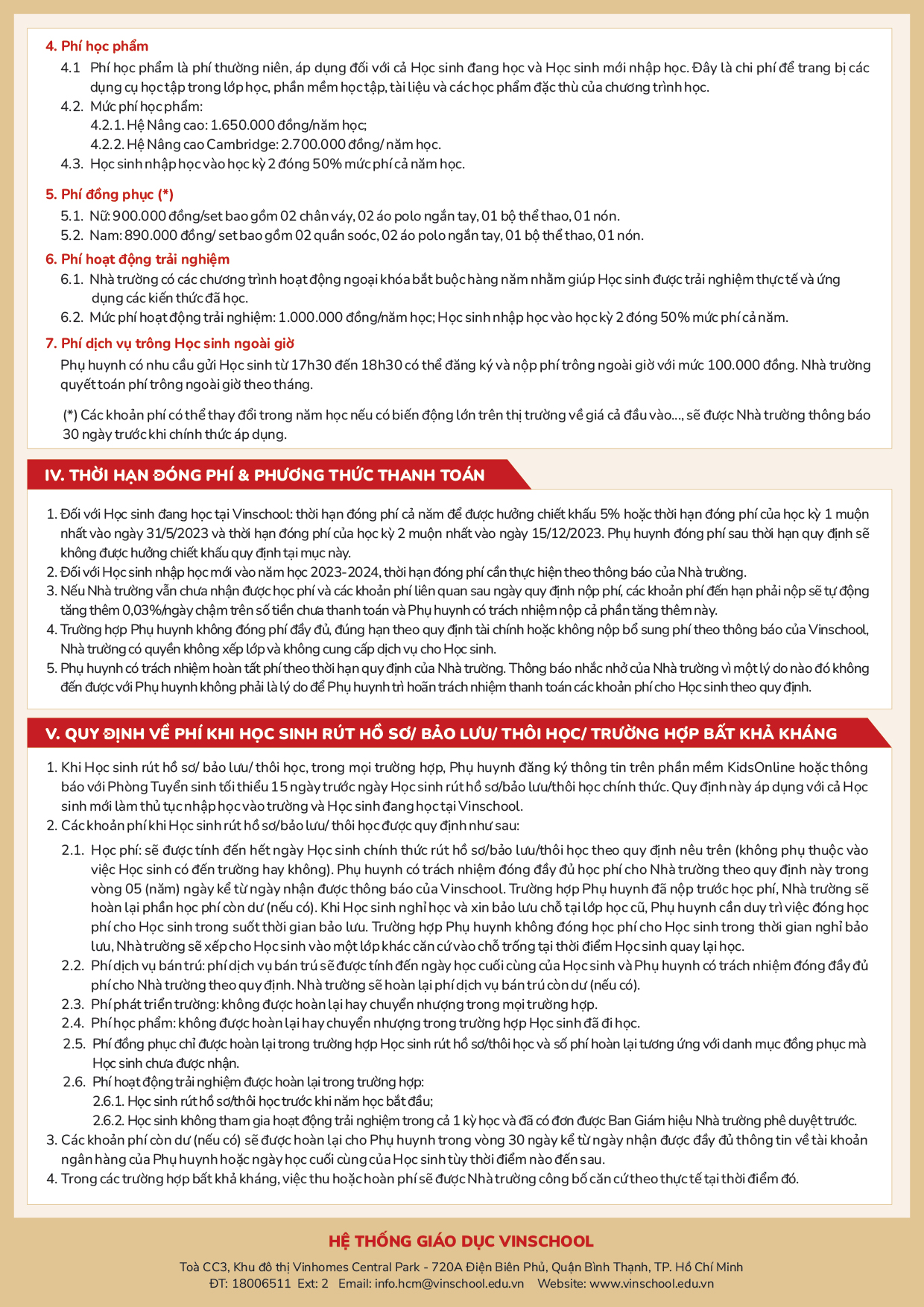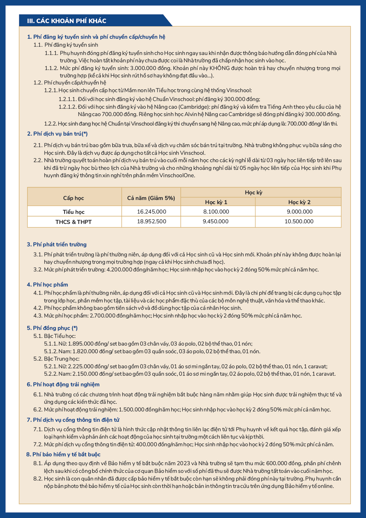 Ngoài học phí chính khóa, Vinschool còn có một số phí khác như: