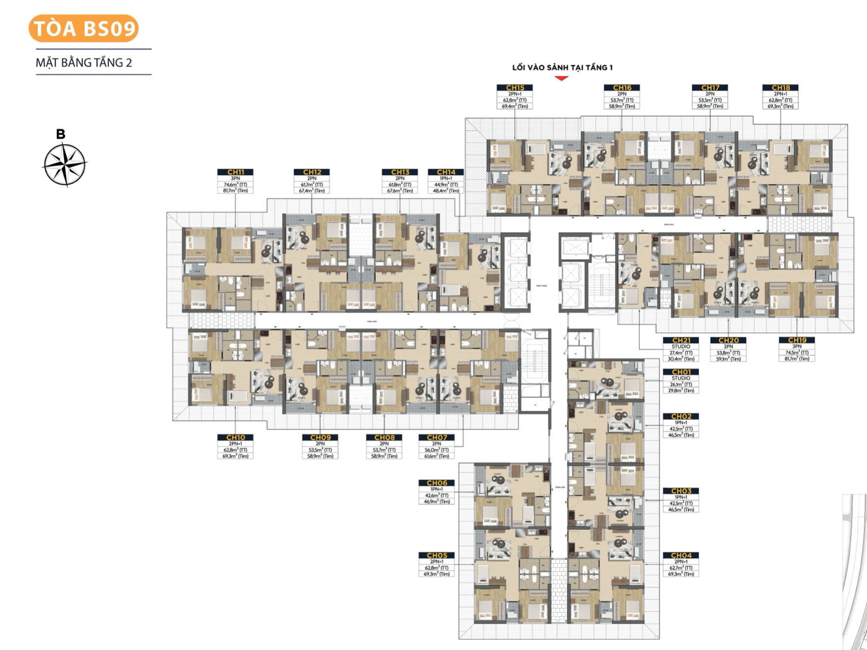 Mặt bằng các toà tháp căn hộ với hình chữ Z – U – T tinh tế, đảm bảo cho mọi căn hộ đều có tàm view nhìn thoáng đãng, an cư tại dự án. Các loại hình căn hộ của dự án bao gồm: căn hộ studio; căn hộ 1-3PN sang trọng.
