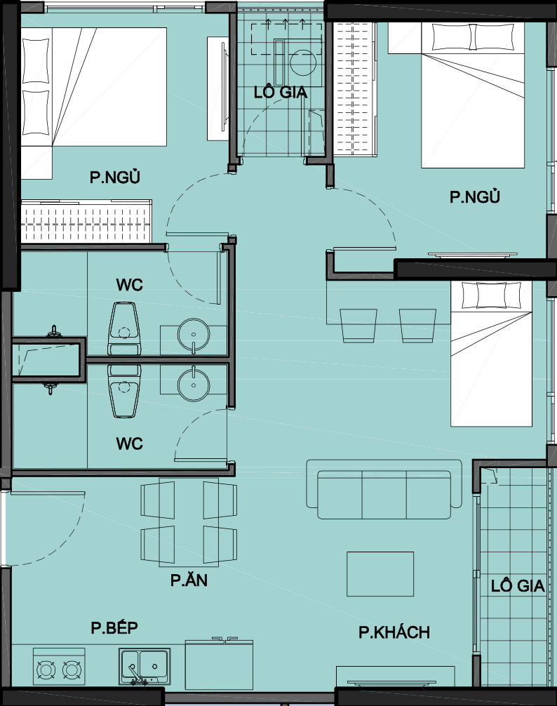 - Diện tích căn hộ trung bình: từ 30m2 – 92.5m2