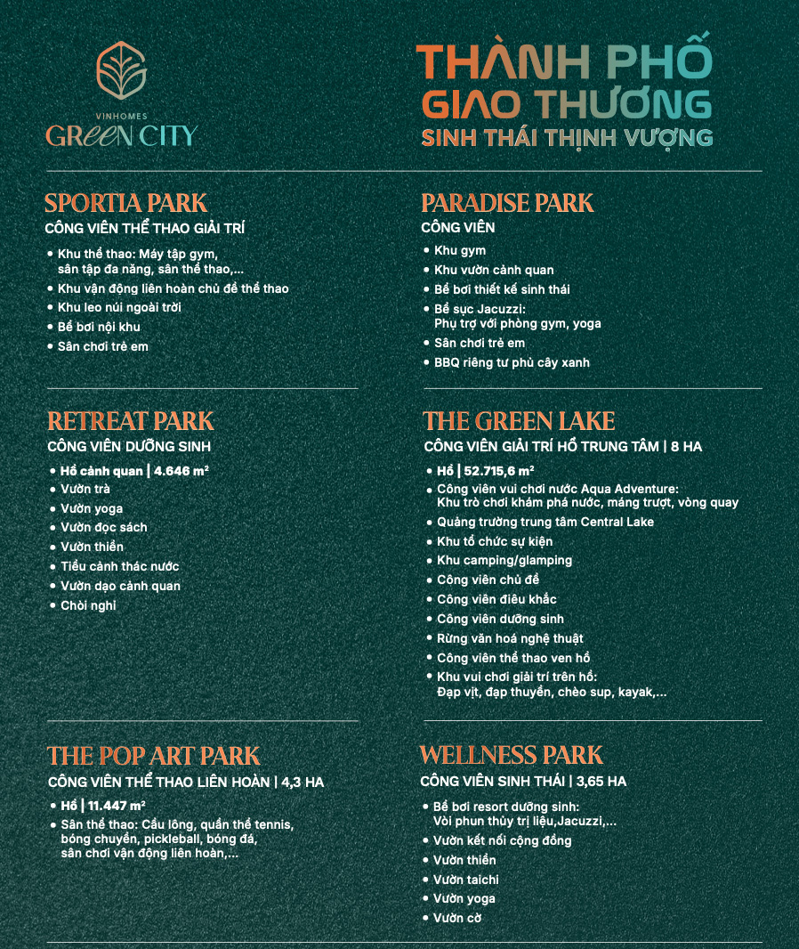 Hình 3: Đặc trưng các công viên tại Vinhomes Green City.